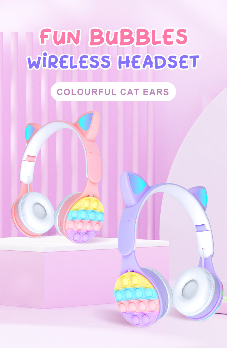 M6 Bubble Cat Ear Over-Ear Bluetooth Headphones, A Cross-Border Bestseller, Are Macaron Children's Stress-Relieving Bubble Wireless Headphones